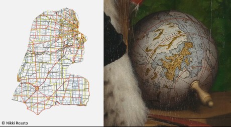 La cartographie consiste à représenter le monde tel qu’on le voit, le connaît et le comprend. Elle produit par conséquent des objets hybrides oscillant entre art, science et politique que les artistes vont de tout temps investir et travailler. Tour à tour ‘images’, glissées comme des détails bavards, supports matériels de peinture, visions du monde remises en question, ou encore critiques citoyennes et engagées, les cartes sont sans arrêt brouillées par les artistes !