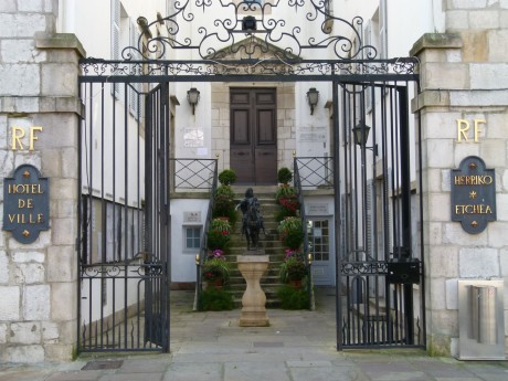 Alors que les édiles tiennent conseil dans l’église Saint-Jean-Baptiste, en 1656, le bayle Jean de Casabielhe fait construire la « Maison de ville », à l’extrémité du pont et en vis-à-vis immédiat de la maison Lohobiague, qui perd ainsi sa vue vers l’ouest. D’une grande sobriété, le bâtiment en forme de « U », est surmonté d’un fronton à volutes abritant une cloche. Au XVIIIe siècle pour financer la construction d’une digue de protection, les édiles vendent une partie du corps de ce bâtiment qui est restée privée jusqu’à ce jour. La cour intérieure est gardée par une réplique d’une statue équestre de Louis XIV achetée par la municipalité en 1932. L’Hôtel de ville abrite une partie de ses collections municipales composées d’œuvres d’artistes locaux, de Ramiro Arrue à Gabriel Deluc en passant par Edouard Solorzano.