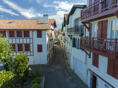Au sortir du pont de bois édifié dès le XIVe siècle, le cœur de ville distribué par la rue Pocalette offre, malgré les destructions dues aux invasions successives, des vestiges architecturaux remarquables. On y découvre des maisons typiques de l’architecture labourdine urbaine avec leur rez-de-chaussée maçonné abritant entrepôts ou commerces, surmonté d’étages en encorbellement structurés par des pans de bois. Poutre sablière à motif d’accolade, porche structuré de larges claveaux décorés d’une frise de perles ou encore large avant-toit soutenu par des consoles de bois sculptées de volutes, sont autant de motifs à découvrir le long de cet axe historique.