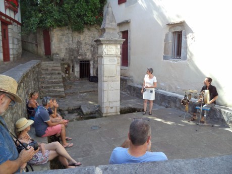 .Appartenant à l’imposante maison d’armateur Olhet Baita, la fontaine qui alimenta le cœur de ville jusqu’au début du XXe siècle est datée de 1676. Érigée à la manière d’un obélisque et surmontée d’un pyramidion, cette fontaine monumentale décorée de deux caravelles, d’un cheval et d’un chêne, révèle la richesse de la cité maritime. En amont, au pied d’un des passages à escaliers typiques de Ciboure, le bassin de décantation à débordement permettait de filtrer l’eau provenant de la colline de Bordagain.