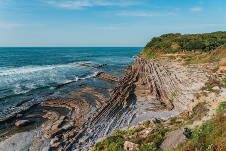 Issu de la convergence puis de la collision des plaques ibériques et européennes, le trait de côte est marqué par la présence d’affleurements rocheux de grands plis couchés, nommés flyschs marnocalcaires, qui se composent d’une alternance de bancs de calcaires durs et de couches marneuses tendres. La fragilité de ce système participe au recul du trait de côte.