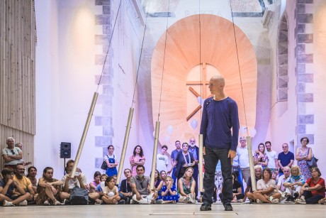 Né en Bavière en 1970, Jörg Müller obtient son diplôme en Arts du Cirque au Centre National des Arts du Cirque en 1994. Œuvre singulière, Mobile est une pièce de jonglage avec des tubes métalliques suspendus, qui lorsqu’ils se rencontrent ou sont manipulés par l’artiste, sonnent en harmonie tel un immense carillon.